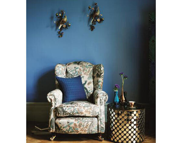 Teal is ultra-popular this autumn, on walls and fabrics. It truly comes to life here contrasted against the stunning vintage style pattern in this Morris Wingchair in duck egg €1,095 from www.dfs.ie