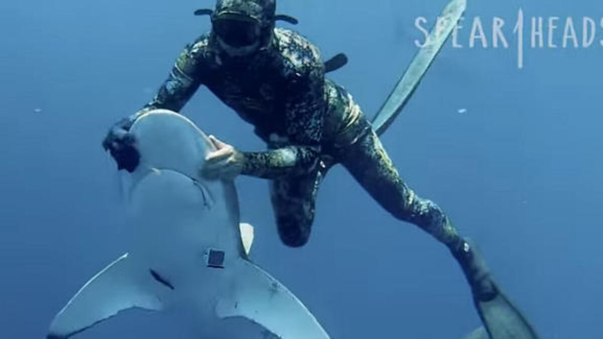 Michael Dornellas is part of the Spearheads group that records their spearfishing exploits online and they posted a video yesterday of him doing something that would strike terror into most people.