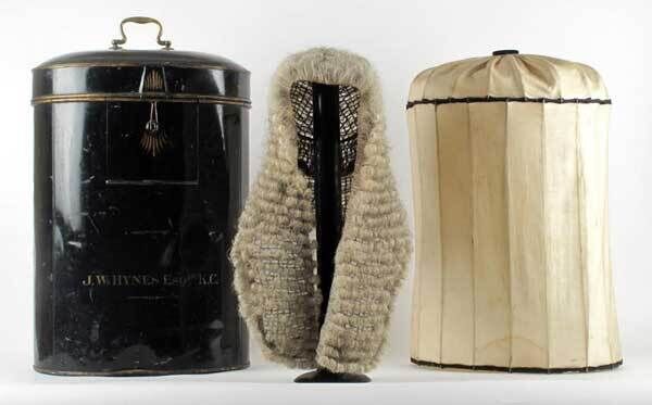 Curiousities include the horsehair full bottomed judge’s wig (pictured below) made for Irish County Court Judge John William Hynes, estimated at €800-€1,000.