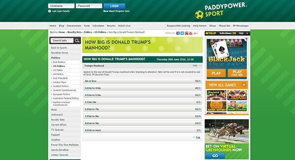 Paddy Power taking bets on Donald Trump's manhood
