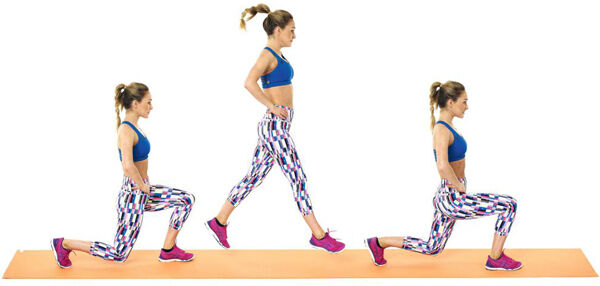 Land softly in the lunge position and repeat on the opposite side for the next rep.