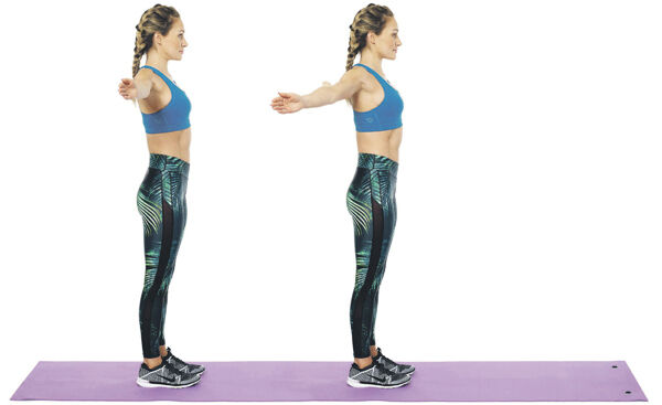 * Standing tall, extend your arms out to the sides with your palms facing forwards and every muscle fully engaged.