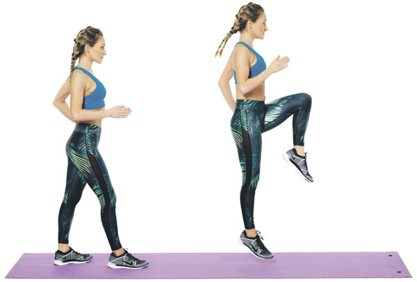 * Start standing, then take a quick step forwards and lift your opposite knee up as you jump.