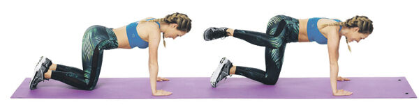 * Start on hands and knees, with hands directly under your shoulders and knees directly under your hips. Keep your back flat with your hips tucked under.
