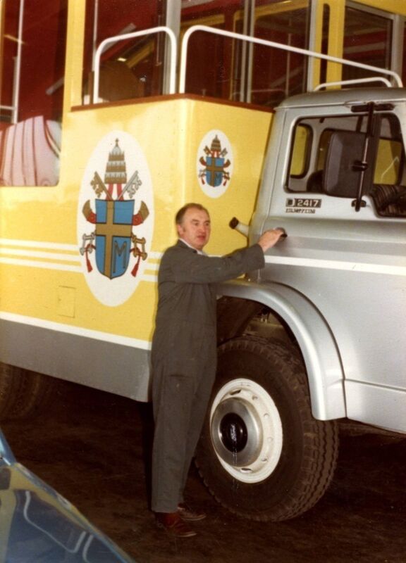 Matt and John ran OBAM Vehicle Builders and were given the job of designing the Popemobile for the first visit of a pontiff to Ireland 38 years ago.