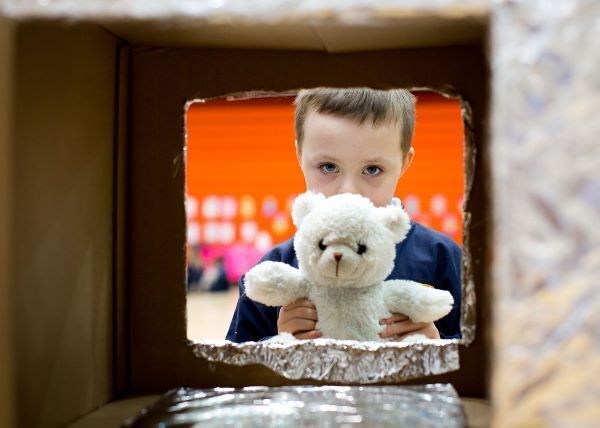 Darragh Horgan (5) from Milford NS appears to have doubts about putting Polar Bear through the X-Ray machine.