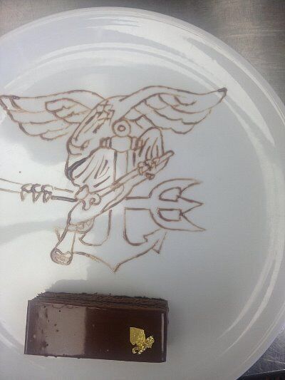 He got a free dinner off his boss after doing this one for a Navy Seal guy who wrote complimenting him.