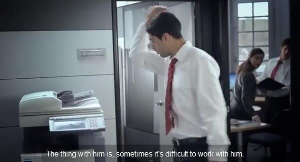 His collegues talk about him throughout the clip describing him as a great worker but, "a little competitive."