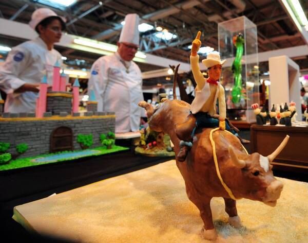 Cake in the Shoe and Handbag category ready to judged at Cake International, NEC, Birmingham