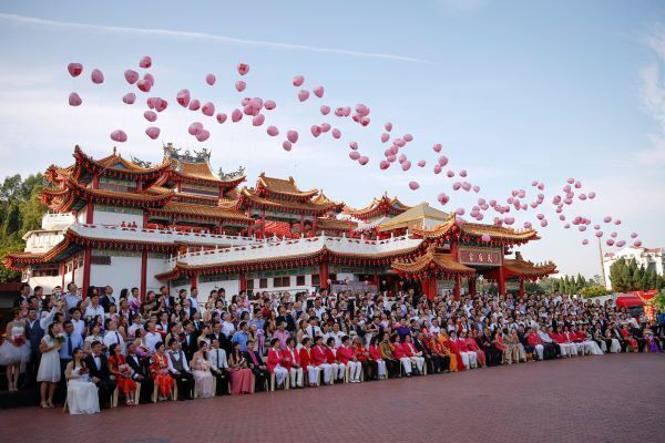 Newlywed couples in Malaysia release balloons on a pretty special day - Valentine's Day and Chinese Valentine's Day fell on the same day this year.