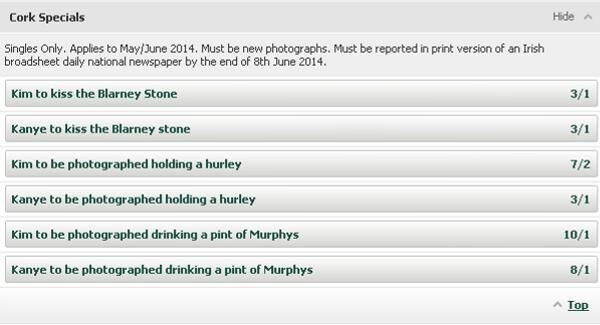 Paddy Power are already offering odds on what Kimye will get up to on their trip to the Rebel County.