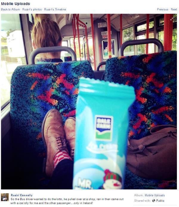 Turns out the driver had forgotten to buy his lottery ticket and to make it up to Ruairí and another woman on board, the driver bought the pair ice lollies.
