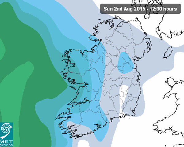 "Persistent and prolonged rain is likely to affect the western half of the country during the day and evening with heavy falls in Atlantic coastal counties."
