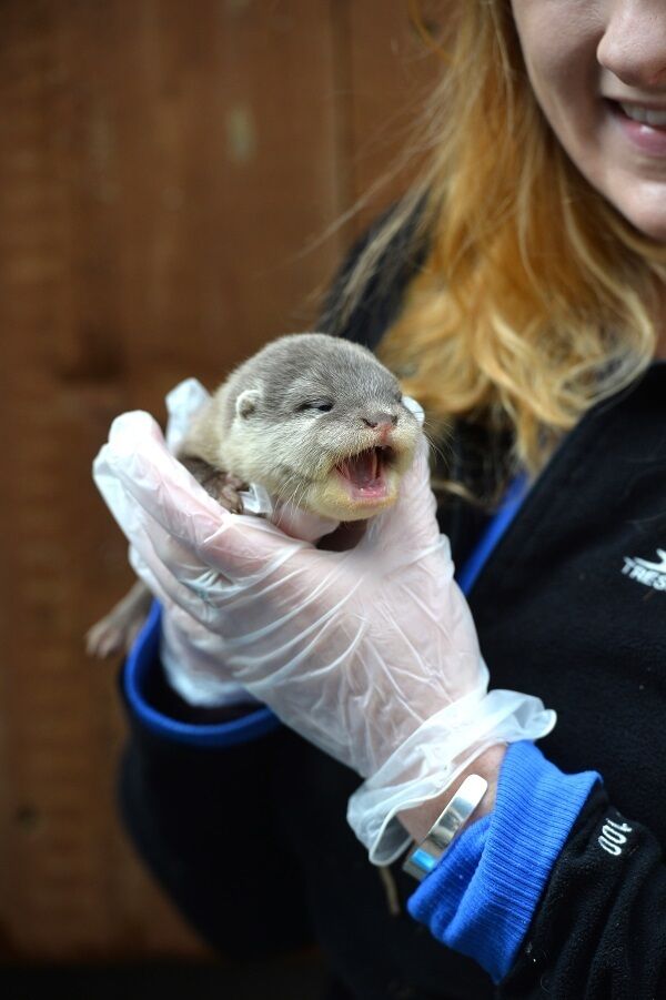 One of the adorable duo is pictured here with Head aquarist Louise Overy.