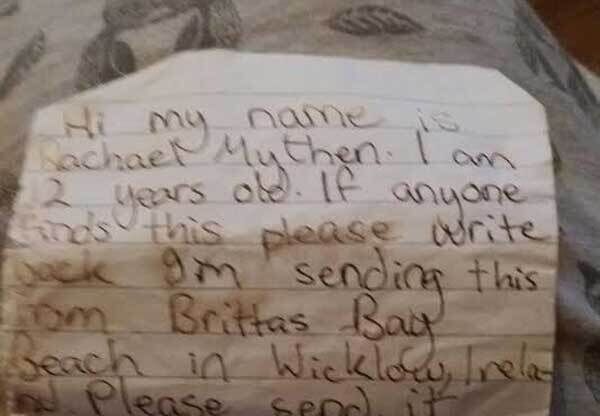 She then decided to post a message on a Facebook page called âLost at Seaâ to see could she find out who sent the note and was amazed when she got a response from Ireland within four minutes.