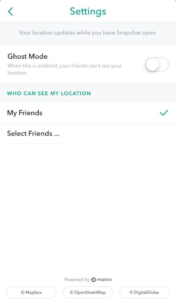 Similar to your story preference, choosing the my friends option will allow your friends to view your location on the map and select friends lets you choose specific friends.