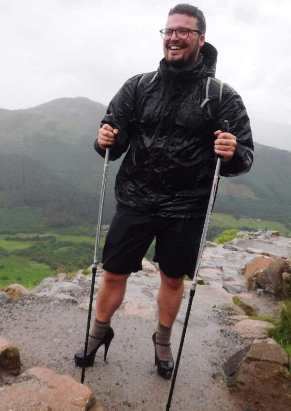 Ben Conway, from London, endured rain, gales and a rocky path to make it more than two-thirds of the way up Ben Nevis, the highest mountain in the British Isles, in stilettos before deciding to call it quits.