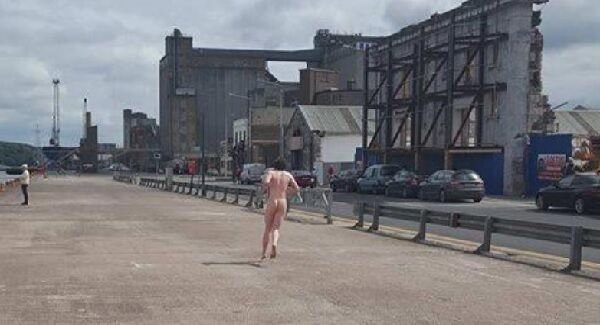 Unfortunately for him the Gardai were on hand to cover his modesty and no doubt deliver a dressing down.