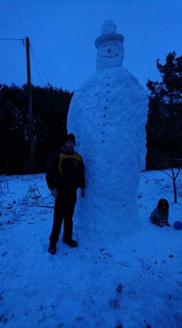 Aaron Hornibrook tried to go as high as possible with his snowman, but he only had a 14ft ladder.