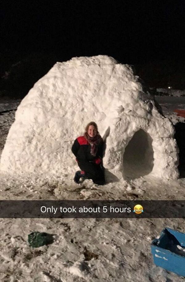 Fair play to Kathryn O'Shea and her family for their efforts in making this 11ft igloo.