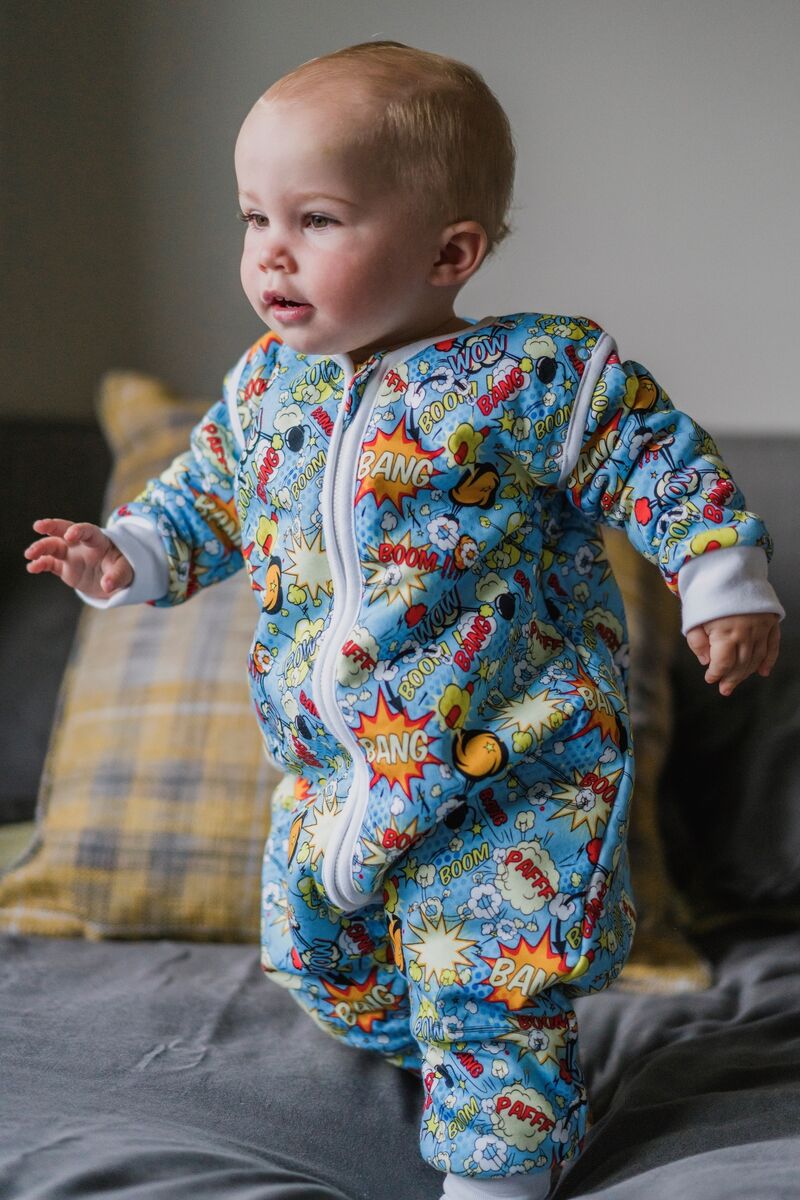 The sleepsuit comes with detachable sleeves and is made from super soft organic cotton.
