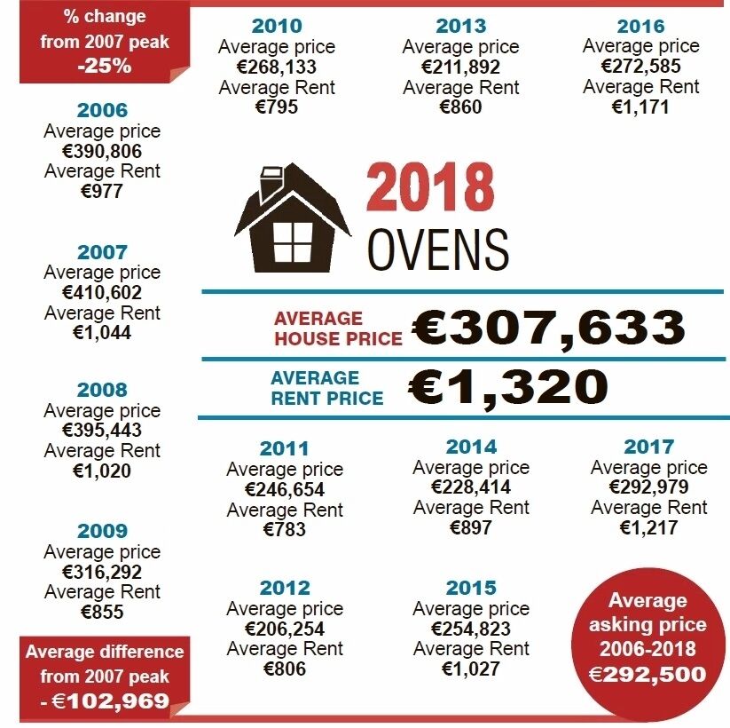 Just four areas in Cork City – Douglas, Rochestown, Blackrock and Bishopstown/Wilton – were more expensive than Ovens, with just Kinsale in the county having a higher premium.