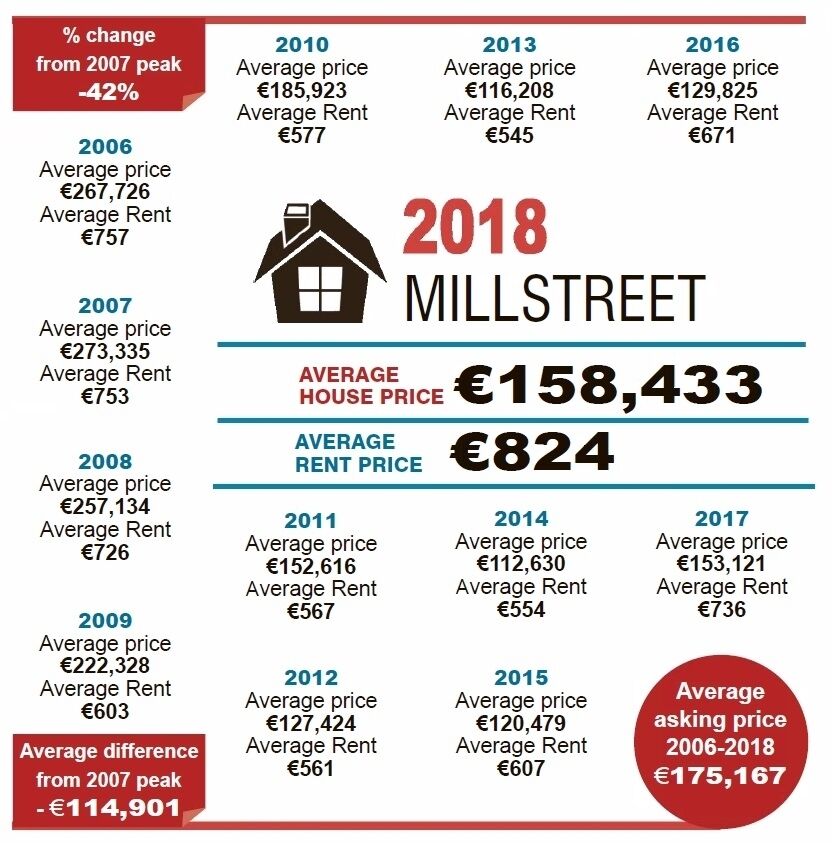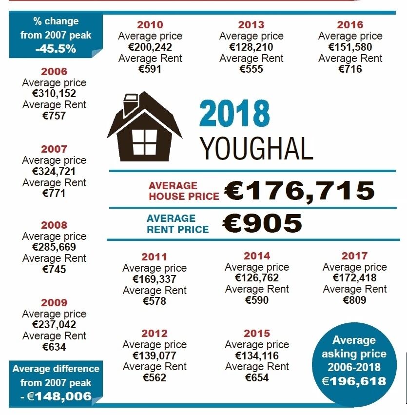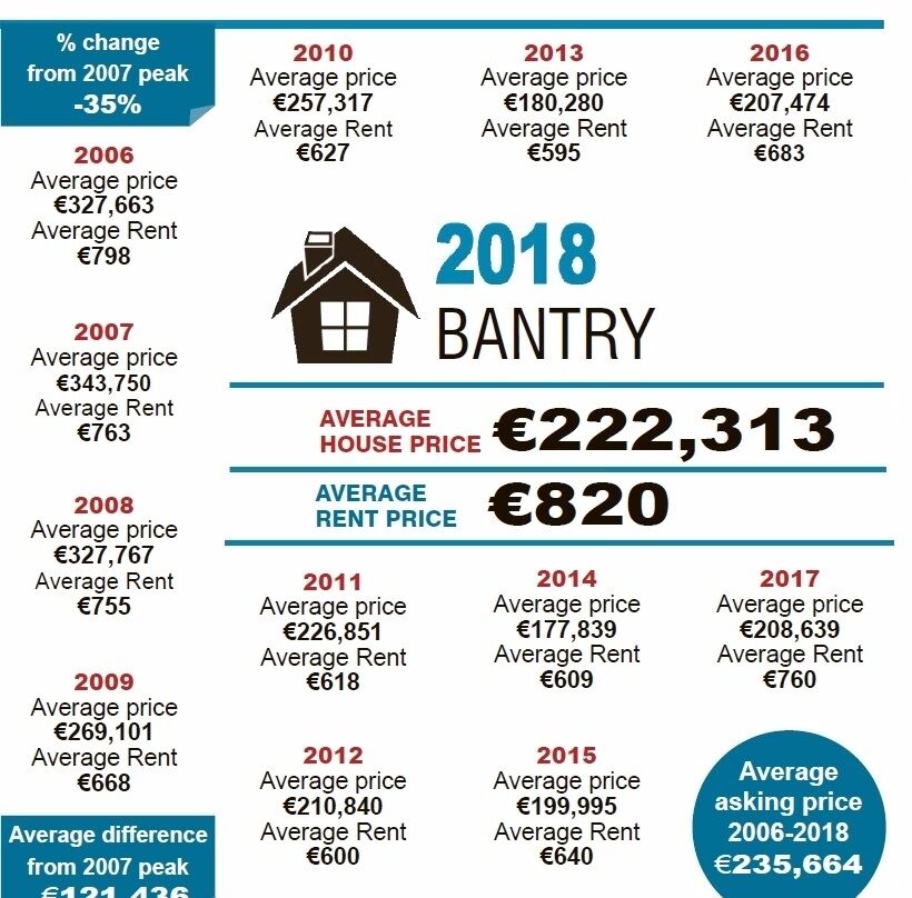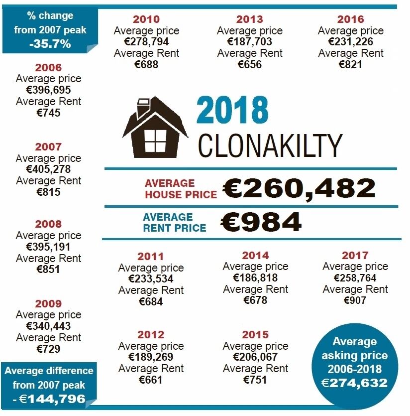 In Skibbereen, prices have increased by €65,000, on average, but the Rosscarbery and Baltimore area has seen prices grow by just 18% - less than €40,000 – since 2013. In 2007, prices were averaging €450,000 and are now less than €250,000. Just Youghal and Charleville in the entire county have a bigger difference in their prices in 2006 and 2018.