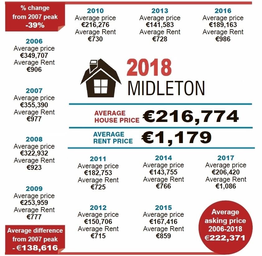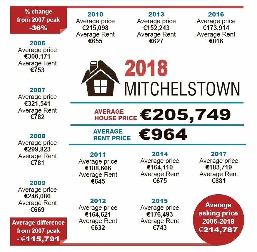 Also on the rail network, Mallow has seen steady growth but prices remained about €10,000 cheaper than those in Cobh or Midleton last year.