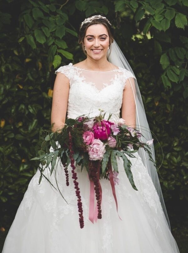 Megan wore a Nicole Spose dress sourced in Diamond Bridal, Cork, teamed with a headpiece from Azure Jewellery, Cork. The bridal hairstyling was by Lynsey O’Leary with Linda Collins as makeup artist.