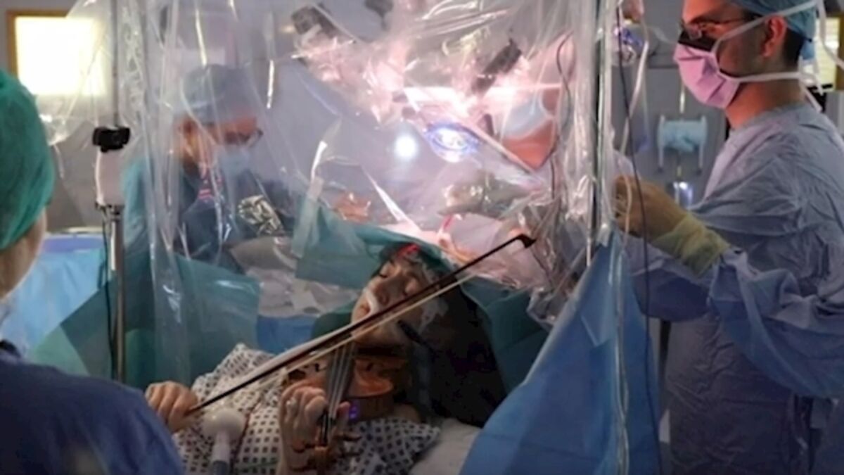 Patient plays violin during her own brain operation