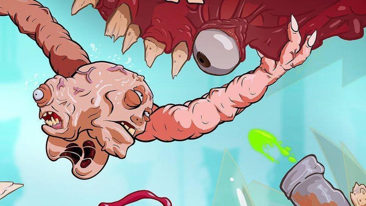 The nameless abomination you control in Struggling wakes up in a lab, trapped in a giant glass jar, with only two long arms attached to a hideous head with two faces. It looks like a cross between Krang from the Mutant Ninja Turtles, and a melted octopus. But less handsome than that.