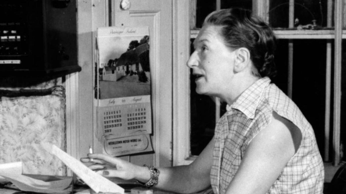 Irish novelist and short-story writer Elizabeth Bowen (1899 - 1973) working at her home, Bowen's Court in Kildorrey, County Cork. (Photo by Hulton Archive/Getty Images)