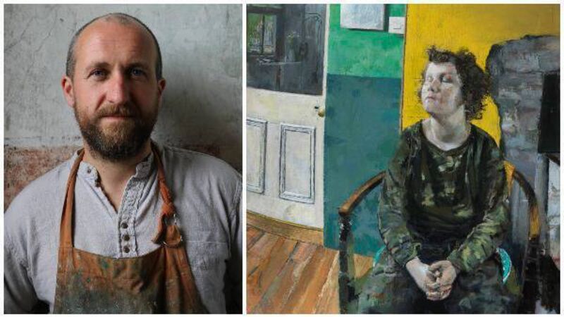 Aidan Crotty and his Zurich Portrait Prize winning portrait, Portrait of a Boy, Morning.