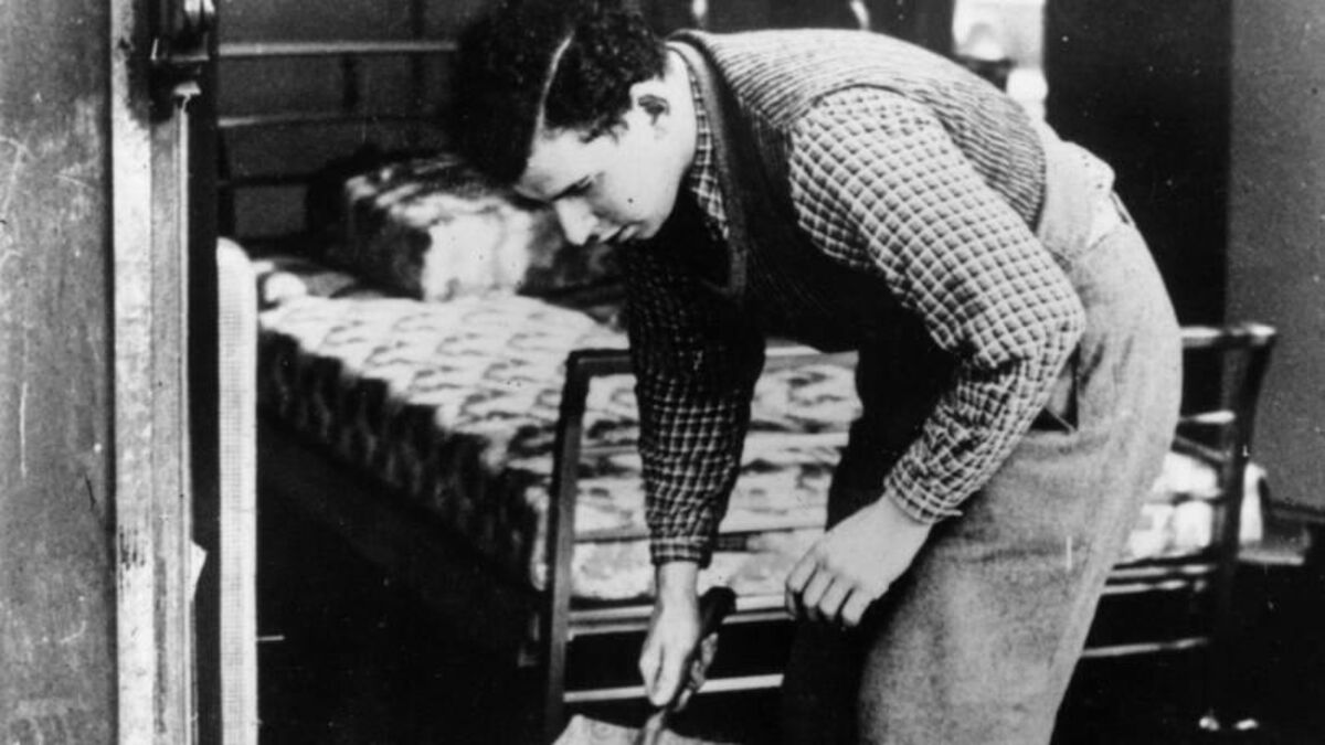 A worker clearing broken glass of a Jewish shop following the anti-Jewish riots of Kristallnacht in Berlin. (Photo by Hulton Archive/Getty Images)