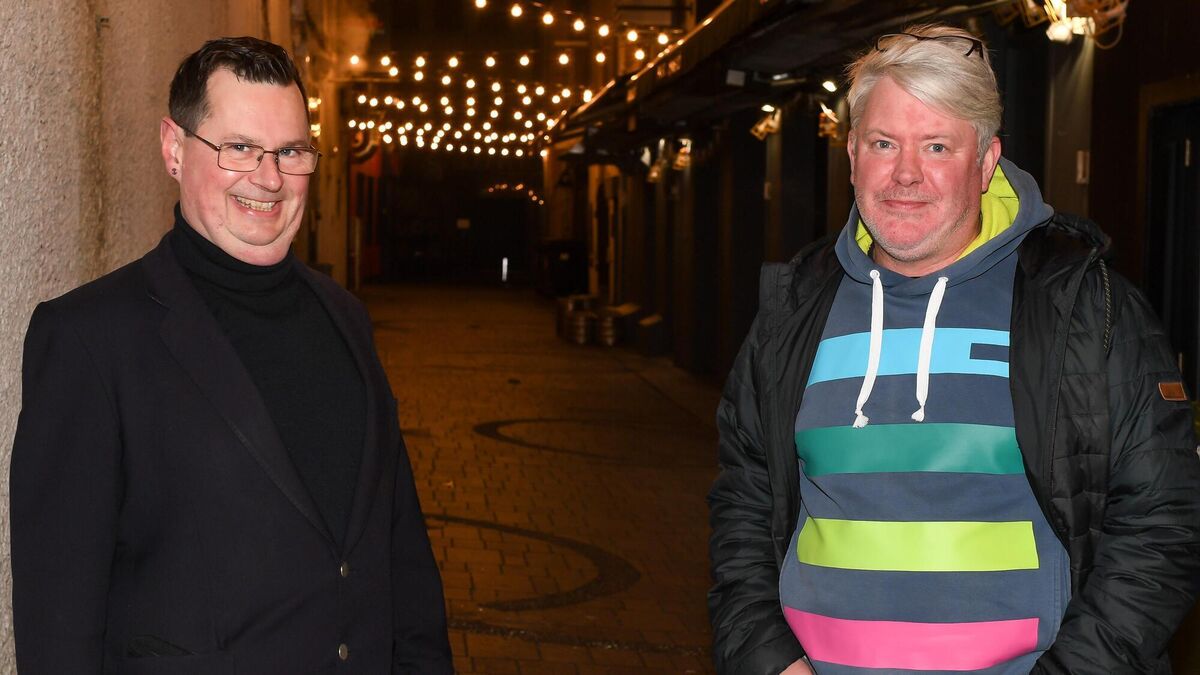 Allin Gray, CEO of the Irish Association of Youth Orchestras and Pat Kiernan, Corcadorca Artistic Director, attending Hail to the Great Wave at the Triskel Arts Centre, Cork. Pictures: David Keane.