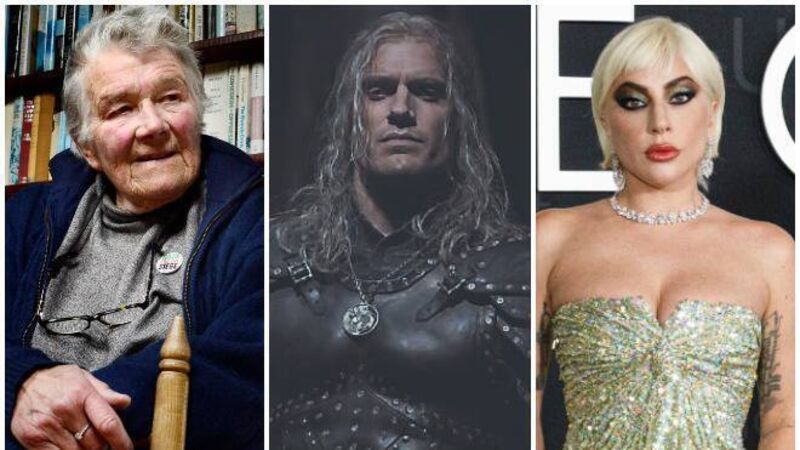 L-R: Travel writer Dervla Murphy; Netflix' Geralt of Rivia; singer Lady Gaga