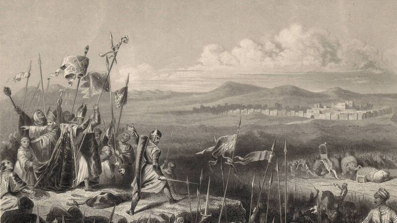 1098, The battle of Antioch taking place outside the walls of the city during the first Crusade. (Photo by Rischgitz/Getty Images)