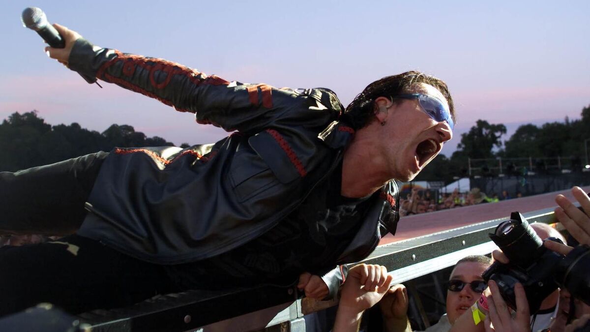 Bono on stage at Slane in 2001. Pic: Chris Bacon