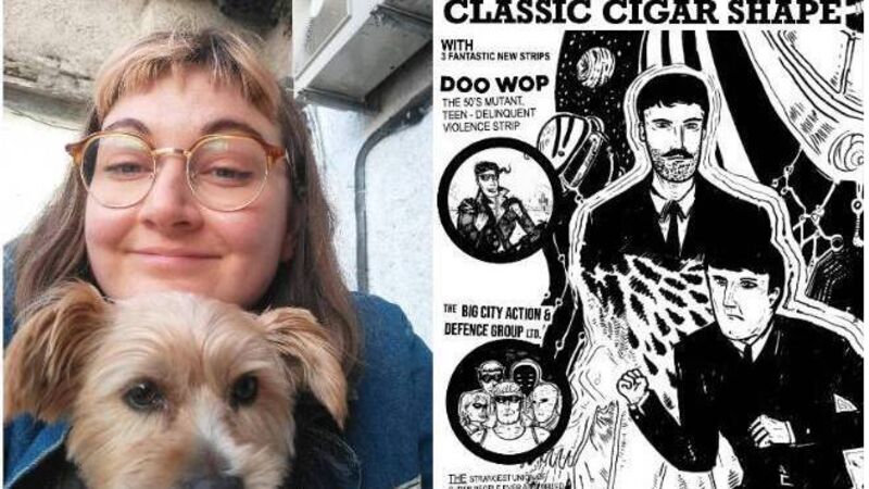 L-R: Cork Zine Fest co-ordinator Mo Odling and assistant; the cover of Laurie Shaw's 'Classic Cigar Shape' comic-strip zine