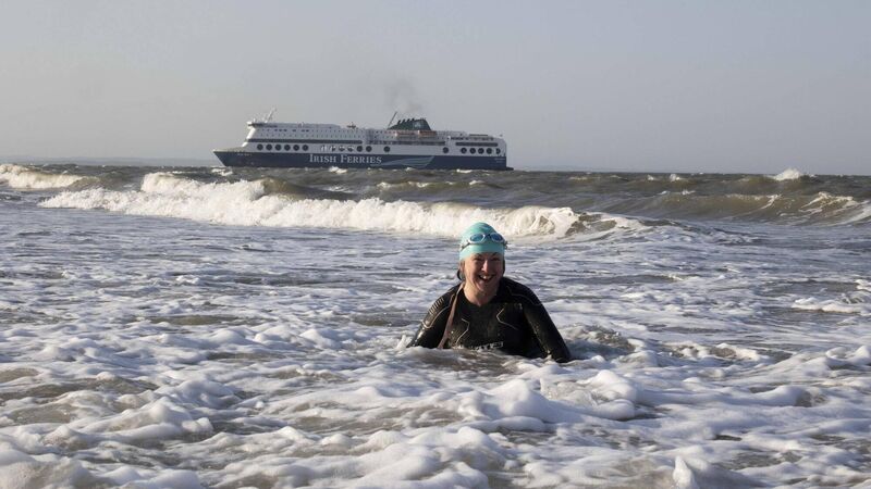 Professor Claire Connolly swims at Rosslare Harbour, April 2023. Picture: Clare Keogh