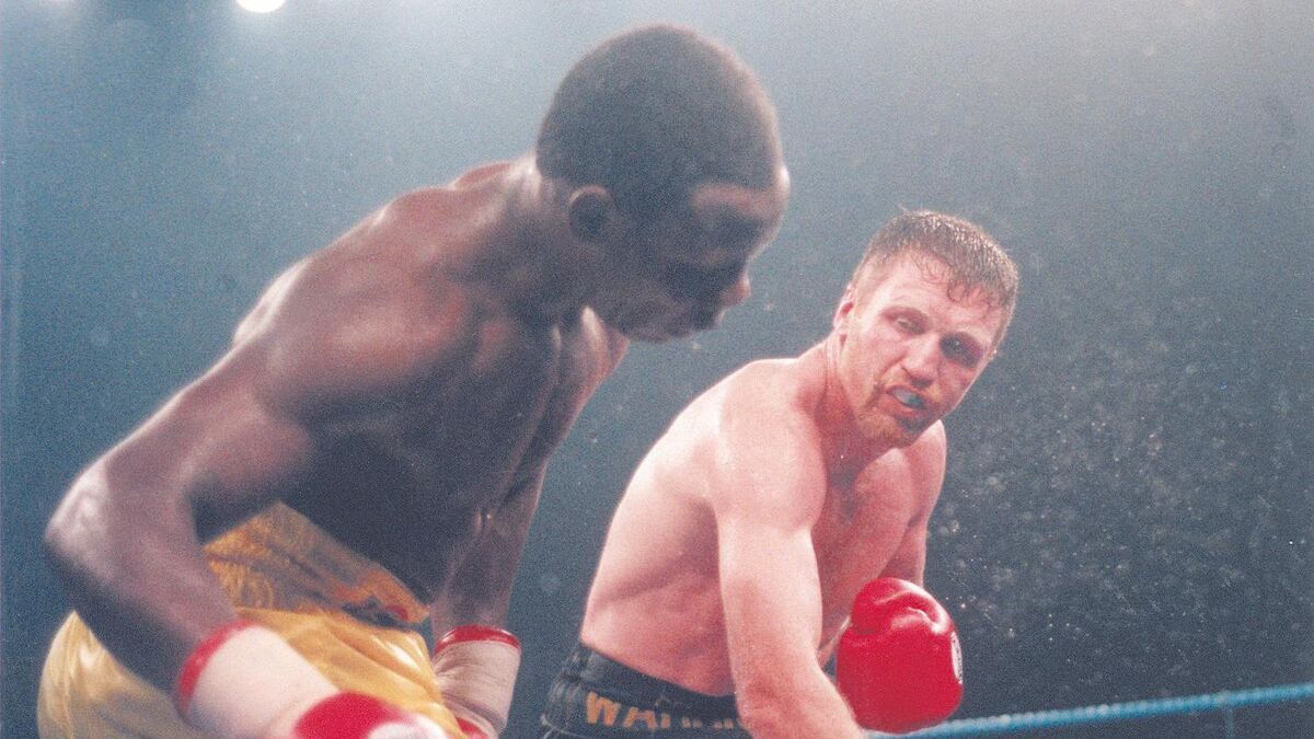 Sporting heroes: Steve Collins rocks Chris Eubank when winning his world super middleweight title fight against Chris Eubank in Millstreet, Co Cork, in 1995. Picture: Dan Linehan, Irish Examiner.