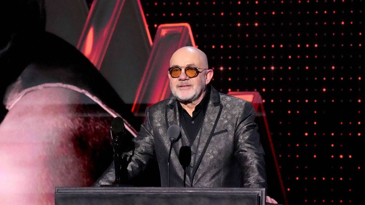 Bernie Taupin on stage at the Annual Rock & Roll Hall Of Fame induction ceremony last month in New York City. Picture: Jeff Kravitz/FilmMagic