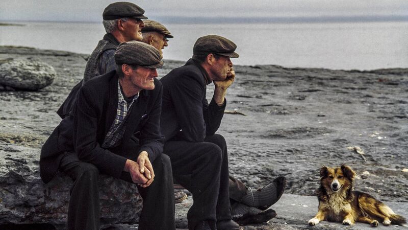 Four men and a dog on Inis Meáin in 1973, an image from the TG4 documentary Inis Meáin: Idir Dhá Linn. Picture: Chris Rodmell