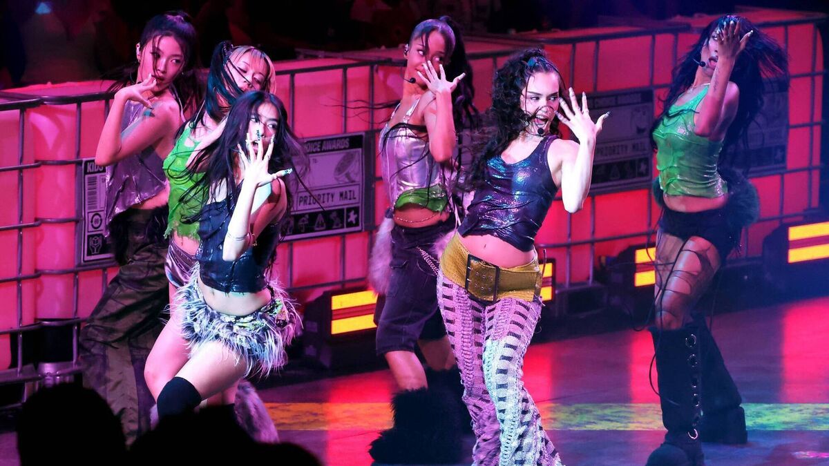 Katseye performs during the Nickelodeon Kids' Choice Awards in Santa Monica, California, on June 21. Picture: Kevin Winter/Getty