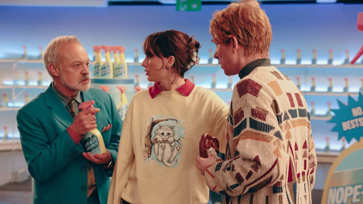 Graham Norton, Taylor Swift and Domhnall Gleeson in the Opalite music video.