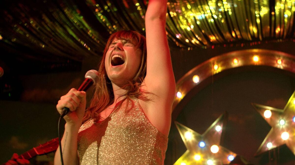 Jessie Buckley singing in a scene from Wild Rose.