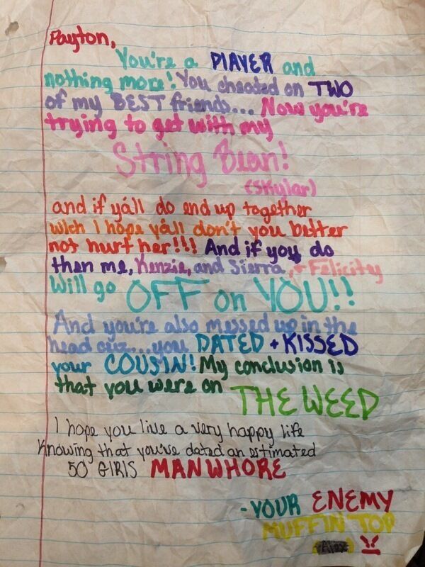That’s what Payton found out anyway when he got the elaborately colour-coded letter below from the exasperated sixth grader (11-year-olds apparently) recently.