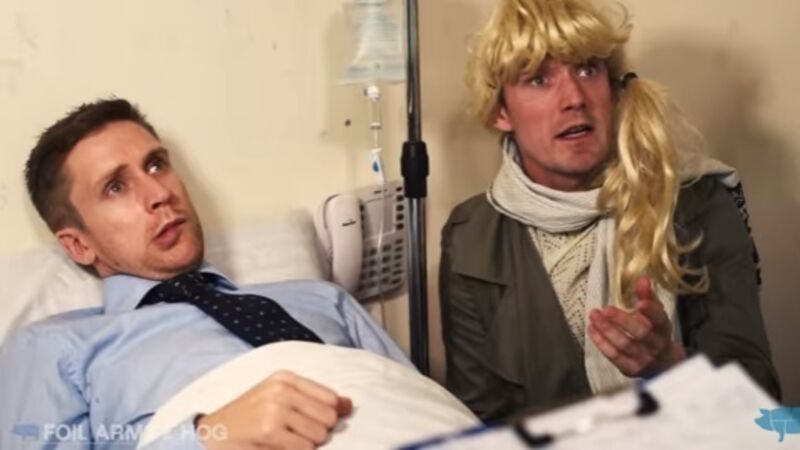 His worried wife has brought him into hospital where the doctor diagnoses him to be ’bored off his tits’.
