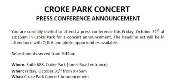 SUBSCRIBEYesterday MCD revealed that they be would announcing a BIG headline act for Croke Park tomorrow, Friday 31 at 10:15am.