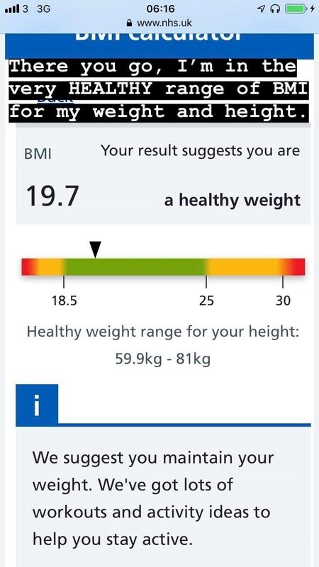 To reiterate the fact she calculated her BMI from the NHS and said: "There you go, I'm in the very HEALTHY range of BMI for my weight and height."